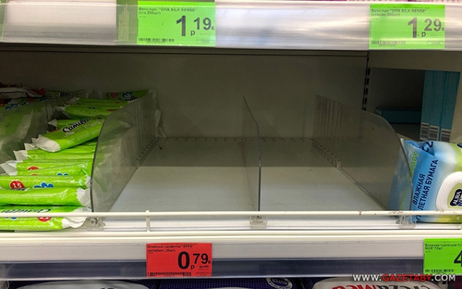 Фотофакт. Пустые полки в минских магазинах. Скупают гречку и антибактериальные салфетки