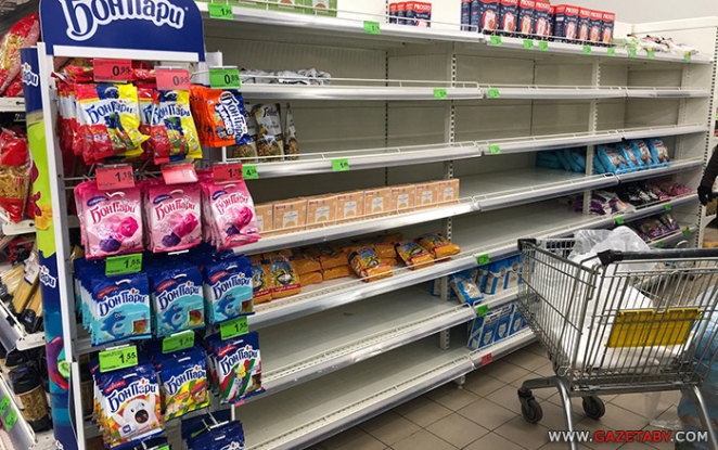 Как можно заметить, на полках нет антибактериальных салфеток. Есть дефицит и с крупами, в частности с гречкой.