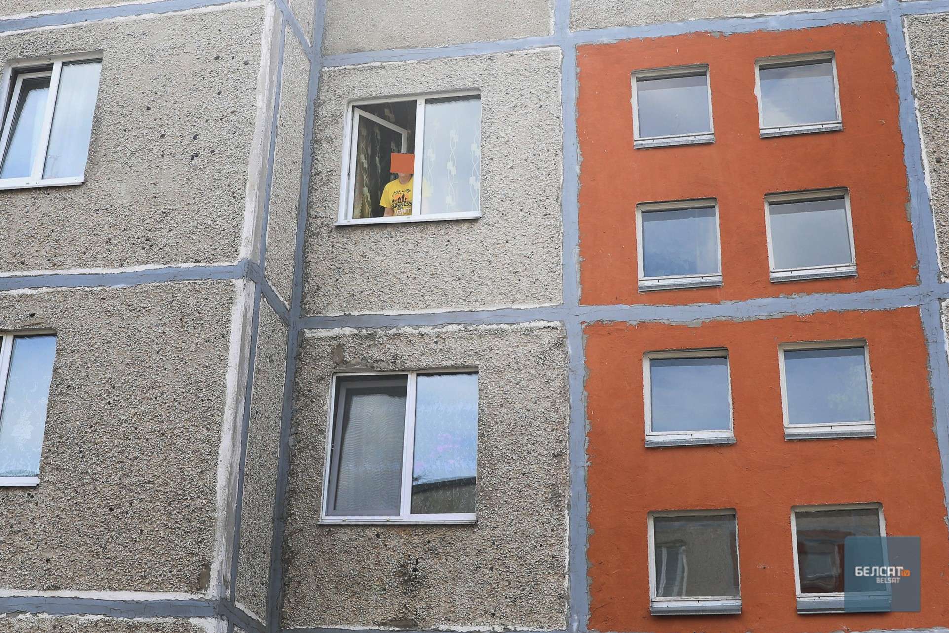 На третьем этаже живет Наталья. Она выглядывает в окно и рассказывает, что среди заболевших, действительно, много работников.
