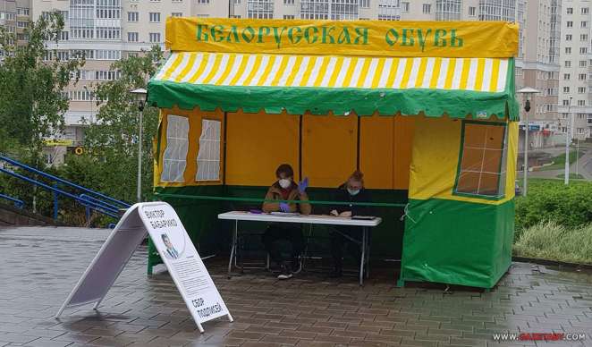 Второй день лета в этом плане выдался особенно ненастным: дождь, ветер, довольно прохладно. Но сборщики подписей остаются на «боевом посту», как видно из фото, присланного читателем «Салідарнасці».