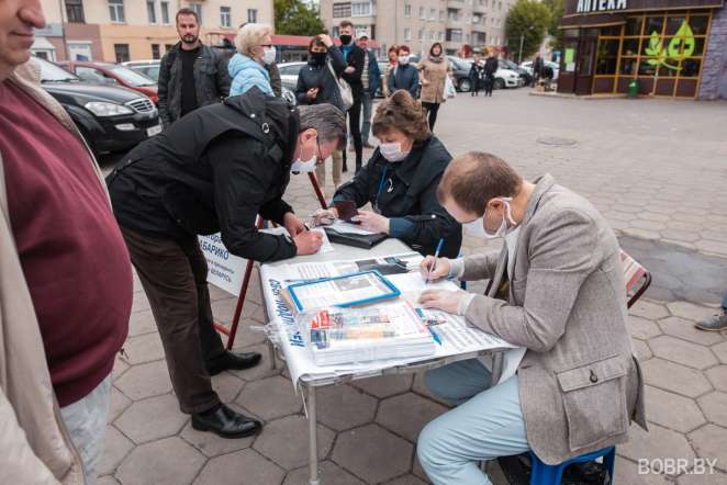 - Мы собираем подписи совершенно бесплатно, на добровольных началах. Сегодня на уличном пикете работает пять волонтёров, и у бобруйчан есть возможность пройти процедуру быстро, на безопасной дистанции. Мы работаем в масках и перчатках. Если 2 июня будет хорошая погода, будем на этом же месте вечером. Кстати, вопреки мнению, что к Цепкало перешли все айтишники, среди нас сегодня два программиста, - шутят члены инициативной группы.