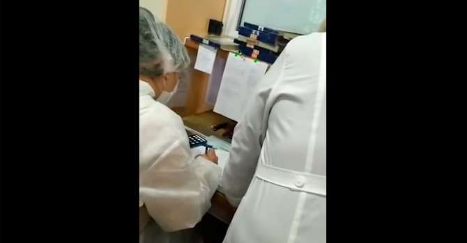 Якобы действие происходит прямо в помещении регистратуры поликлиники. На записи слышны реплики сотрудников: «Да кто их будет проверять, эти списки?!»