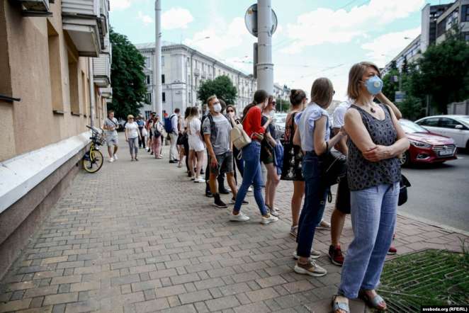 Утренняя очередь возле магазина Symbal.by растянулась на день. Подтянулась и милиция