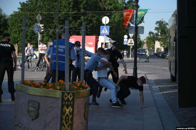 Сотрудники в штатском снимали людей на видео. Задержания проходят спокойно, люди не сопротивляются, сообщает Hrodna.life.