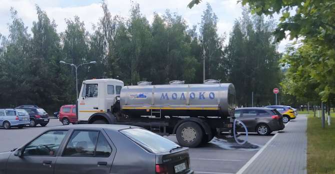 Одинокая машина с надписью «Молоко» стоит на парковке у детской инфекционной больницы. Вода в машине, по словам водителя, артезианская – из источника на улице Гурского (имеется в виду водозабор №2 «Петровщина», который обеспечивает часть Московского района водопроводной водой и где сейчас организована круглосуточная раздачи воды). Ни очередей, ни ажиотажа.