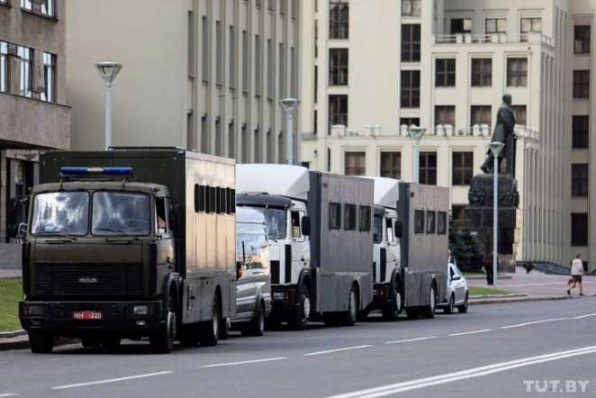 В районе площади Независимости фотограф TUT.BY вечером 14 июля обнаружил три автозака.