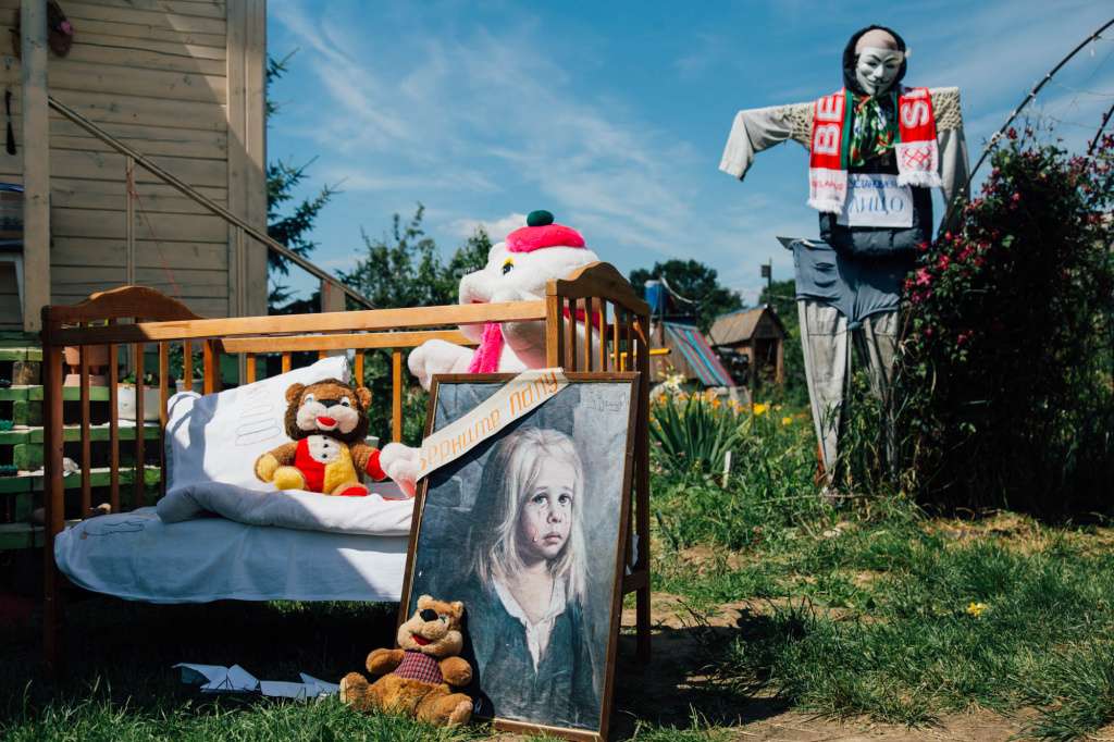 У некоторых осужденных детей есть свои дети, которых они не могут воспитывать из-за своих огромных сроков. Коляска и игрушки – символы тoго, что их ждут дома. Фото: Таня Капитонова / Belsat.eu