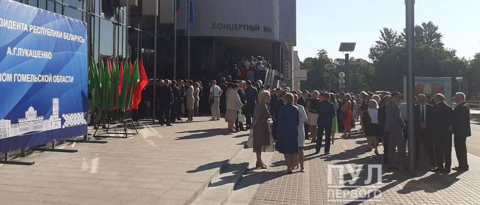 «Пул первого» опубликовал фото, на котором видно, что приглашенные ждут Александра Лукашенко возле концертного зала и его касс.