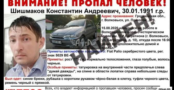 Напомним, 29-летний Константин Шишмаков, директор Волковысского военно-исторического музея имени Багратиона, пропал 15 августа. Он отказался подписывать протокол избирательной комиссии, позвонил жене около 17.00 и сказал: «Я здесь работать больше не буду, еду домой». Но домой так и не приехал.