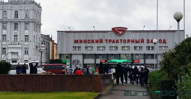 ОМОН у проходной МТЗ, 19 августа 2020-го / Еврорадио