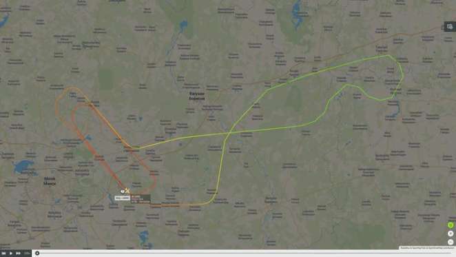Однако только что «севший» самолет тут же, как показал «Радарбокс», отправился дальше. На этот раз в западном направлении. Прошел над Смолевичами — и снова вернулся к аэропорту.