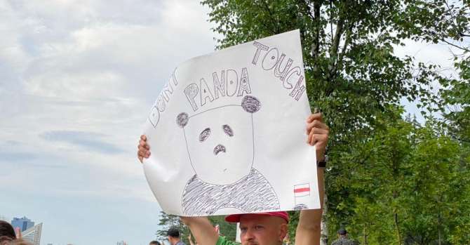 Мужчина держит плакат в поддержку компании PandaDoc на акции у ПВТ 2 сентября. Фото читателя