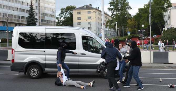 В МВД также заявили, что в Витебске мужчина сорвал с сотрудника, несущего службу по охране общественного порядка, жетон и видеорегистратор; в Новополоцке активисты повредили три служебных автомобиля правоохранителей.