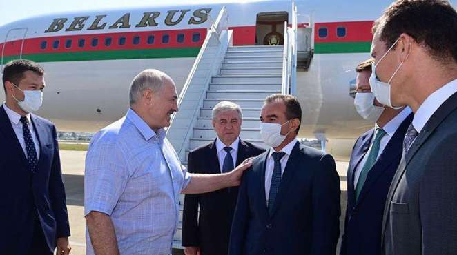 «Лукашенко у трапа встретил губернатор Краснодарского края Кондратьев, набравший накануне на выборах 83 % без всяких протестов», – отмечают авторы.