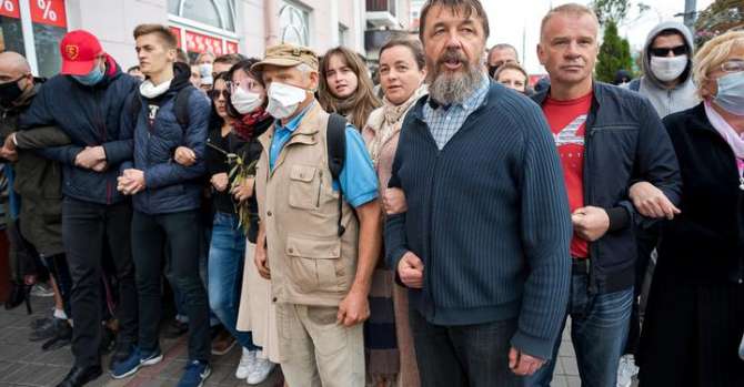 Наталья с мужем Германом (бородатый мужчина на переднем плане) на воскресной акции протеста. Фото TUT.BY