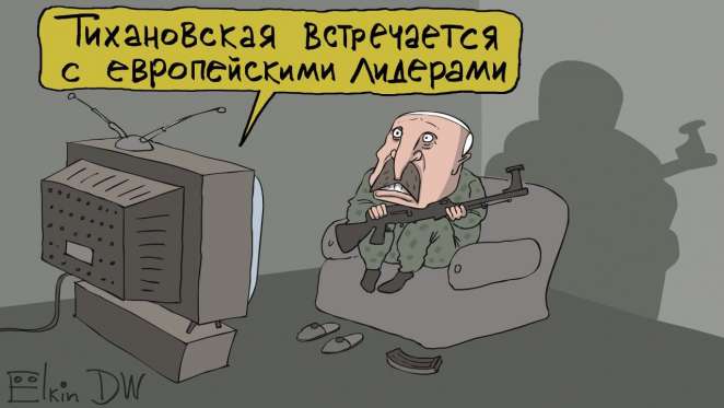 Карикатура дня. Лукашенко смотрит телевизор, где показывают Тихановскую