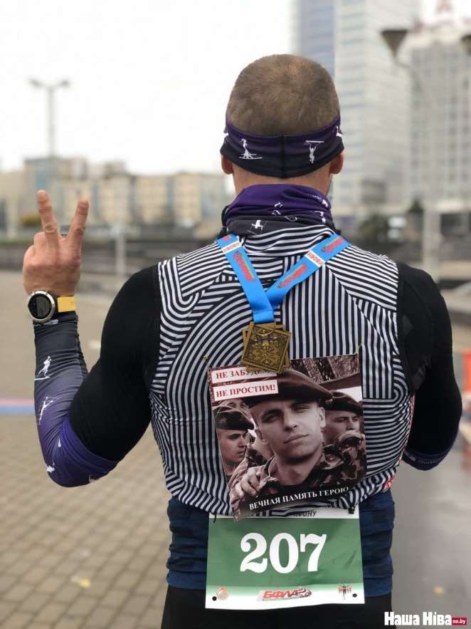 Фотофакт. Участники марафона бежали с фотографиями Романа Бондаренко