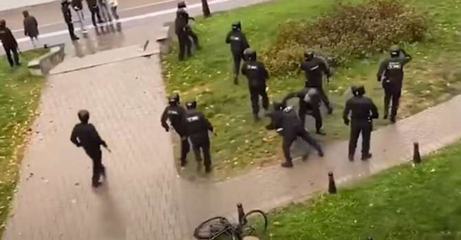 По информации, содержащейся в протоколе задержания, Домрачев ездил на велосипеде по Зыбицкой и выкрикивал лозунги. Однако в рапорте задержания утверждается, что Домрачева задержали на Победителей, 31. Но момент его задержания случайно попал на видео.