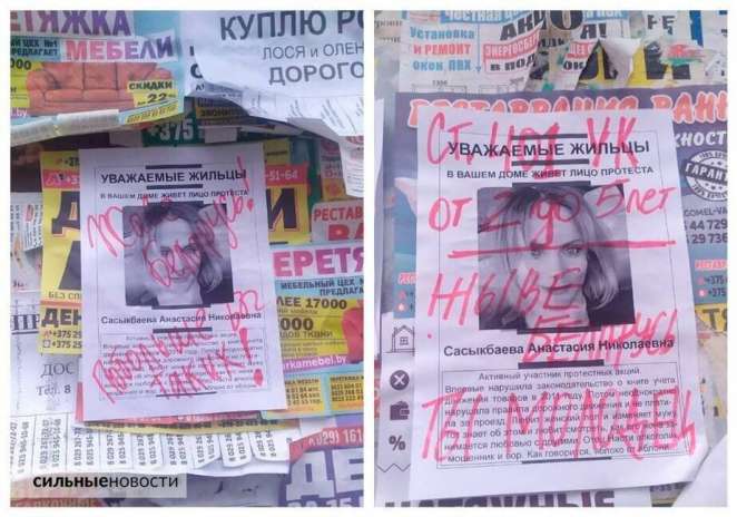 На листовках сказано: «Уважаемые жильцы, в вашем доме живет лицо протеста». Далее следует информация, где пытаются очернить женщин. Так, например, их обвиняют в изменах, нарушении правил дорожного движения и распространении БЧБ-атрибутики, пишут Сильные новости.