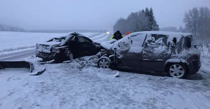 Под Молодечно в новогоднее утро машину на скользкой дороге раскрутило и бросило на другое авто