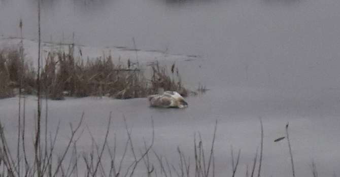 По ее словам, спасатели подобрались к птице, освободили ее из ледяных оков и дали возможность уплыть к двум плавающим вдалеке лебедям.