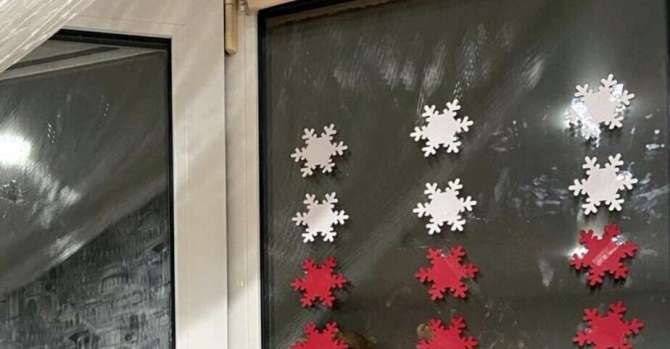Снежинки провисели два дня, окно разбили в ночь на Рождество. Уже через 5 дней в милиции решили, что никакого состава преступления в произошедшем нет.