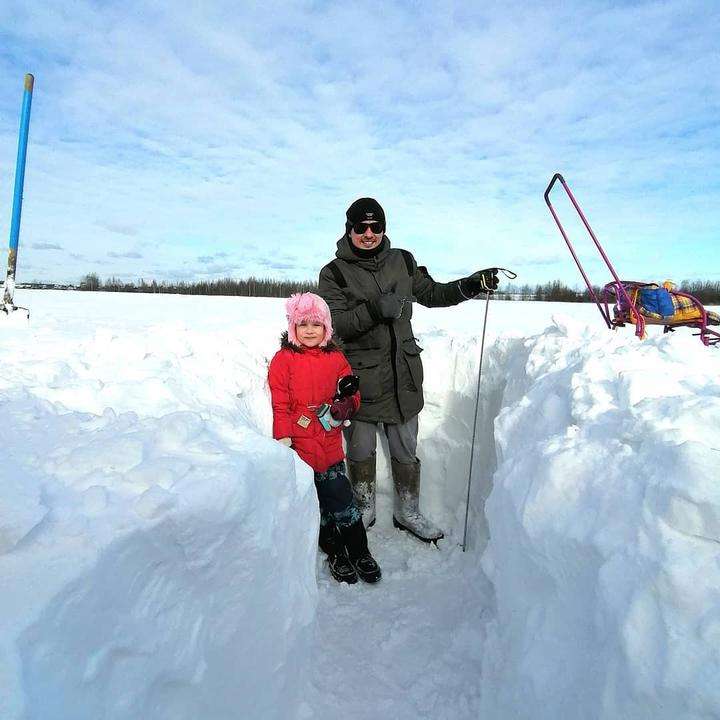 В субботу, рассказывает Юрий, он видел: начинается метель. Утром в воскресенье вышел во двор — и уперся в стену снега. Прочистил лопатой небольшой проход, достал рулетку — оказалось, 110 сантиметров.