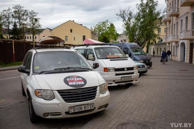 Машины «Страны для жизни» после задержания Тихановского и других членов команды. Фото: Катерина Гордеева, TUT.BY