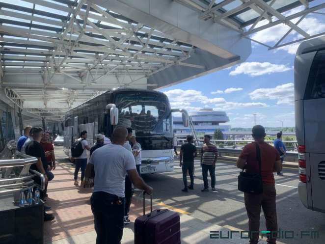 Дальше прибывшие рейсом "Багдад — Минск" расходятся по обменникам, потом заходят в два больших автобуса, которые ждут их у аэропорта.