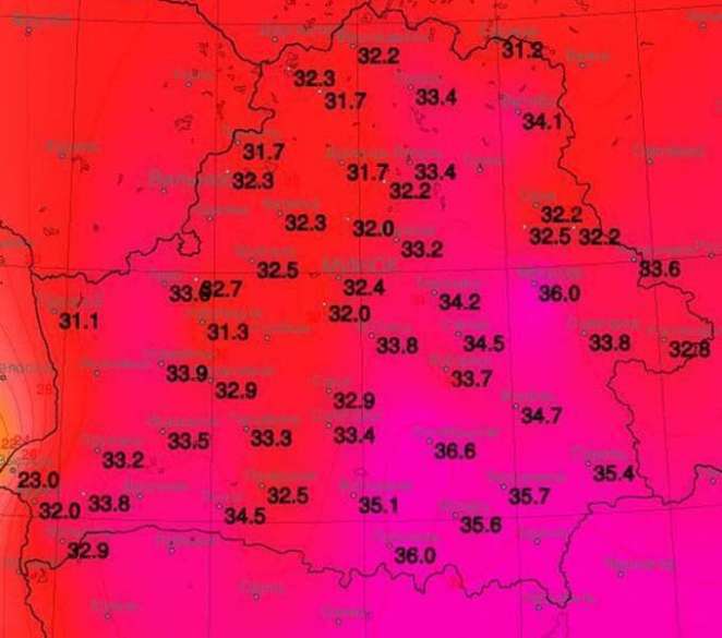 Как сообщает Белгидромет столбик термометра там поднялся до отметки +36.6 градусов.