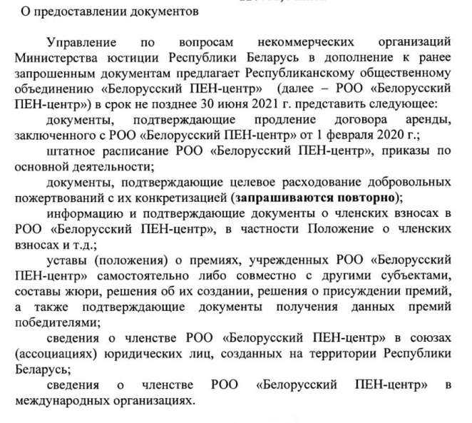 Минюст прислал «письмо счастья» Белорусскому ПЕН-центру