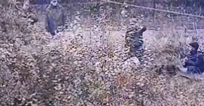 На видео видны мужчины в форме. У одного из них — на спине надпись "Пограничная служба". Мужчины проводят двух мигрантов с Ближнего Востока до какого-то места и указывают им направление движения. Также на видео видна овчарка, бегающая вокруг мужчин в форме.