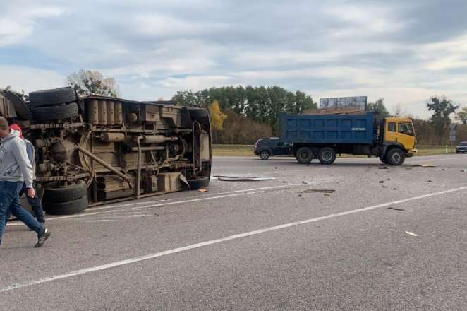 В Украине попал под грузовик и перевернулся автобус с белорусами