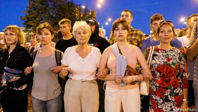 Это фото было сделано 10 августа 2020 года, быстро разлетелось по интернету и стало одним из символов женского протеста.