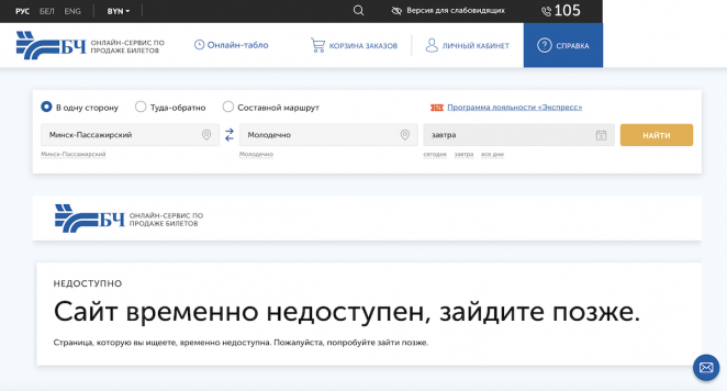 Не работает не только онлайн-сервис покупки билетов, но и многие внутренние системы. По их информации, Минский узел управляется сейчас в ручном режиме.