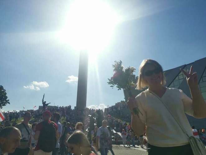 После чего Казей опубликовала в Фейсбуке фото своей — уже бывшей — коллеги и подруги Ольги Забелич, журналистки телеканала «Мир». На фото Ольга с букетом цветов на том самом «Марше за свободу», который прошел 16 августа 2020 года и был самым массовым в белорусской истории.