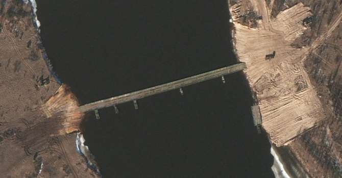 Мост на днях появился в 7 километрах от границы Украины в Чернобыльской зоне отчуждения. Там было много техники. Возникла версия, что понтонный мост россияне могут использовать для переброски военных на территорию Украины через зону ЧАЭС. В Минобороны Беларуси все объясняли учениями.