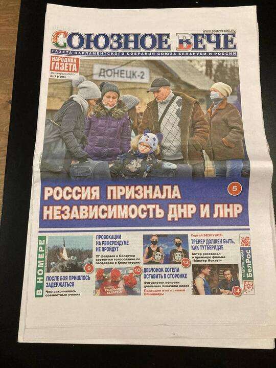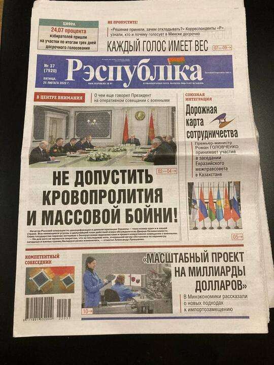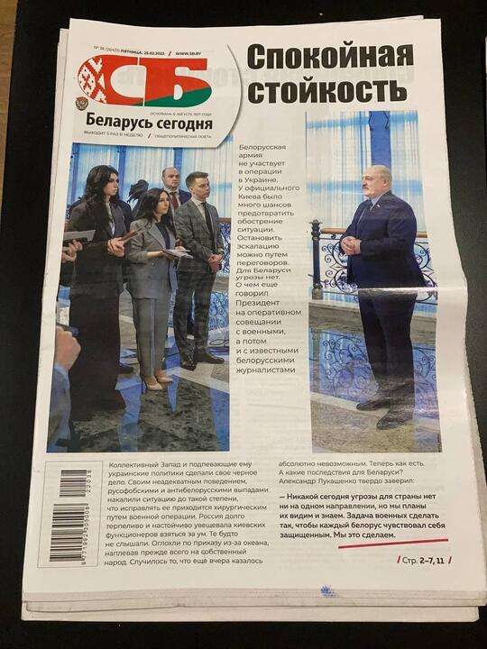 В Украине второй день идет война. Российские войска находятся на подступах к Киеву и многим другим крупным городам. В момент, когда писалась эта заметка, президент Зеленский на видео-конференции с европейскими лидерами заявил, что, возможно, это последний раз, когда они видят его живым. Тысячи, если не миллионы белорусов своими глазами два последних дня видят на улицах нашей страны российскую технику, а в небе российские самолеты — многие из них отправились или еще отправятся в Украину и будут убивать людей. Это видим мы, это видите вы. А сейчас посмотрите, какими видят свои первые полосы 25 февраля редакции государственных газет.