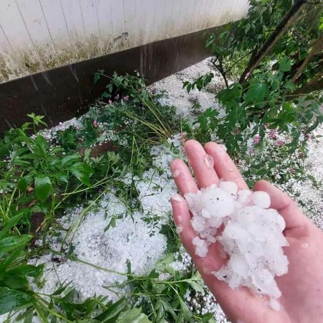 «В районе 16.00 пошел сильный ливень. А затем — сильный град. Град был сначала мелкий, как горох. А затем его размеры стали увеличиваться. Попадались экземпляры квадратной формы 2×2 см. Град шел минут 20−25», — пишет телеграм-канал «Могилевских ведомостей».