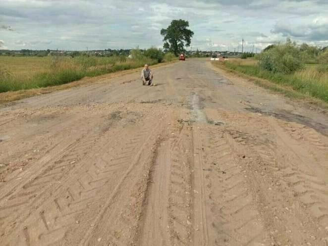 Без уничтожения километра старого тракта, надо понимать, машины бы кувыркались словно яблоки по шиферу, а шум довел бы местных до Новинок. Возмущение эстетов начальник называет шумихой, не имеющей под собой оснований. У него есть аргумент: работники уничтожили не тот фрагмент брусчатки, который считается историко-культурной ценностью, а другой мощеный кусок перед тем отрезком. Почувствовали, как отлегло? А между тем, уничтоженный кусок больше того, который объявлен «ценным».