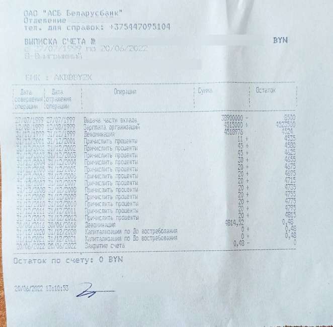 — 22 июня 1999 года я уволился с Ильичевской фабрики первичной обработки шерсти. Спустя месяц снял деньги с вклада «Выигрышный» в «Беларусбанке» и был уверен, что его закроют. Вернулся в страну я только в 2022 году. Пошел в банк, чтобы разобраться с другим своим счетом, а кассир предложила закрыть этот старый счет — так я и у знал, что все эти годы на нем лежали деньги. 12 августа 1999 года мне перечислили на этот счет еще одну зарплату (видимо, после пересчета предприятие оказалось мне должно) — к тому времени я уже был за пределами Беларуси, — рассказывает читатель.