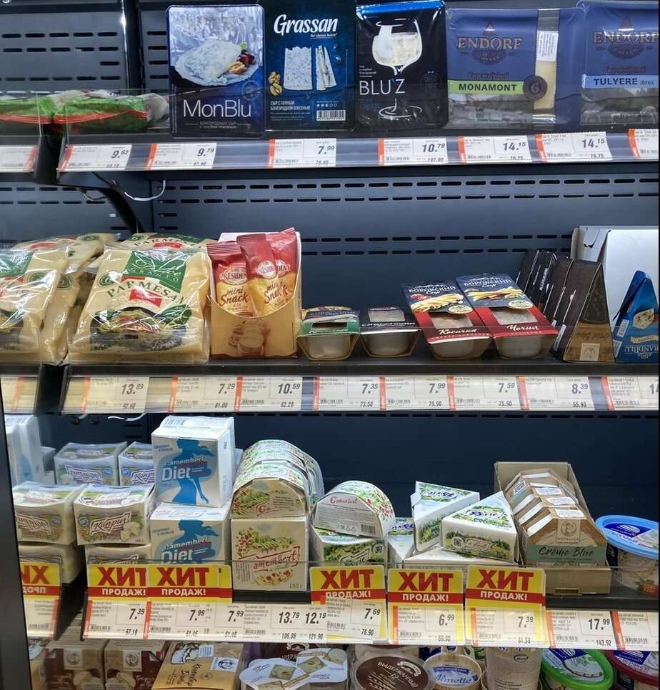 «Мы были в Короне, камамбер искали… полки забиты, сыры на 99,9% российские».