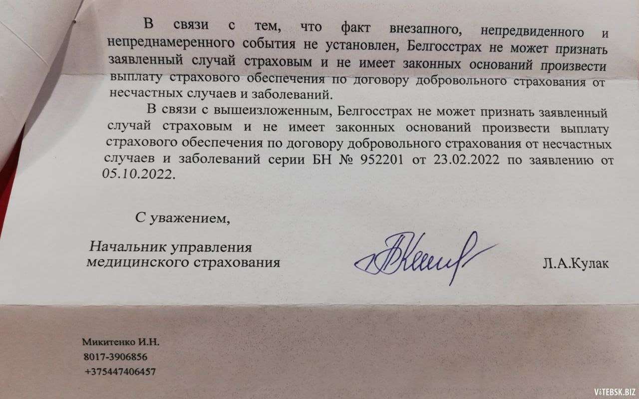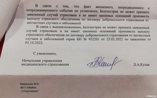 Причина отказа: «факт внезапного, непредвиденного и непреднамеренного события не установлен».