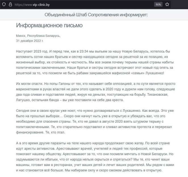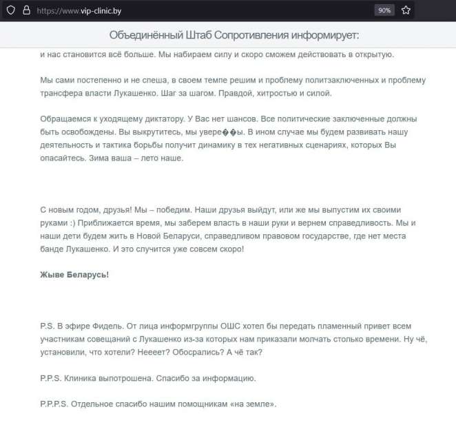 На сайте главной клиники Лукашенко появилось странное «поздравление» с Новым годом
