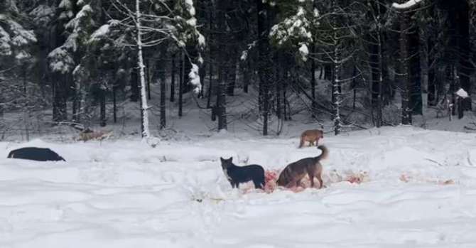 .Позже она прислала еще одно видео, снятое уже в 11.50. Собаки все еще доедали останки животного. Со снимка, присланного еще одним читателем, стало понятно, что собаки делили косулю.
