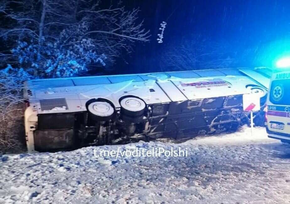 Сегодня ночью на польской трассе dk19 в Wandzin съехал с дороги и перевернулся белорусский автобус, сообщает Newgrodno.