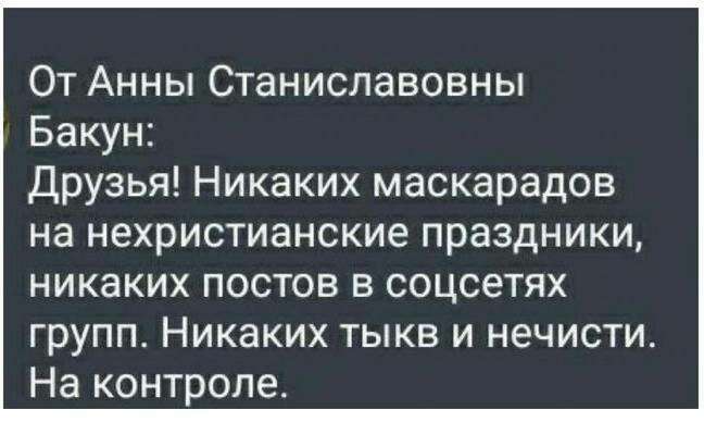 Сообщение от Анны Бакун о праздновании Хэллоуина