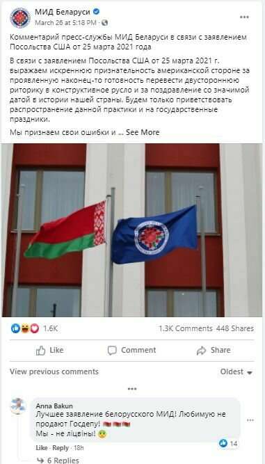 Ранее она оставляла комментарий под одним из постов МИД Беларуси.