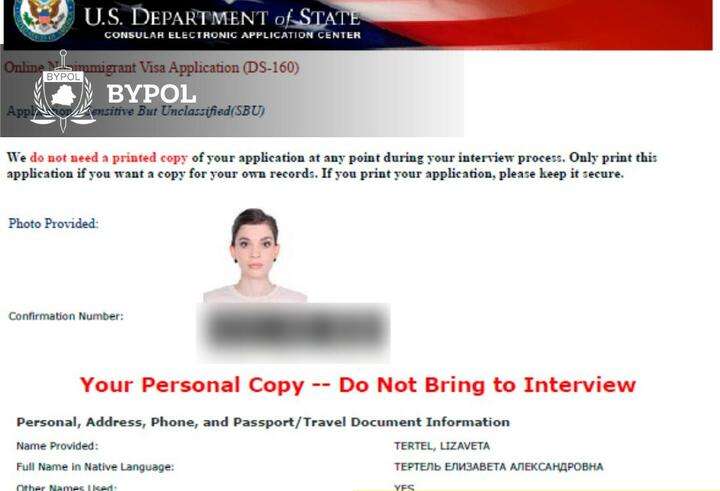 Жена сына председателя КГБ, сотрудница Белтелерадиокомпании Елизавета Тертель (в девичестве Лакотко) собирается совершить поездку в Майами и подала документы на американскую визу. Об этом заявило объединение бывших белорусских силовиков BYPOL.