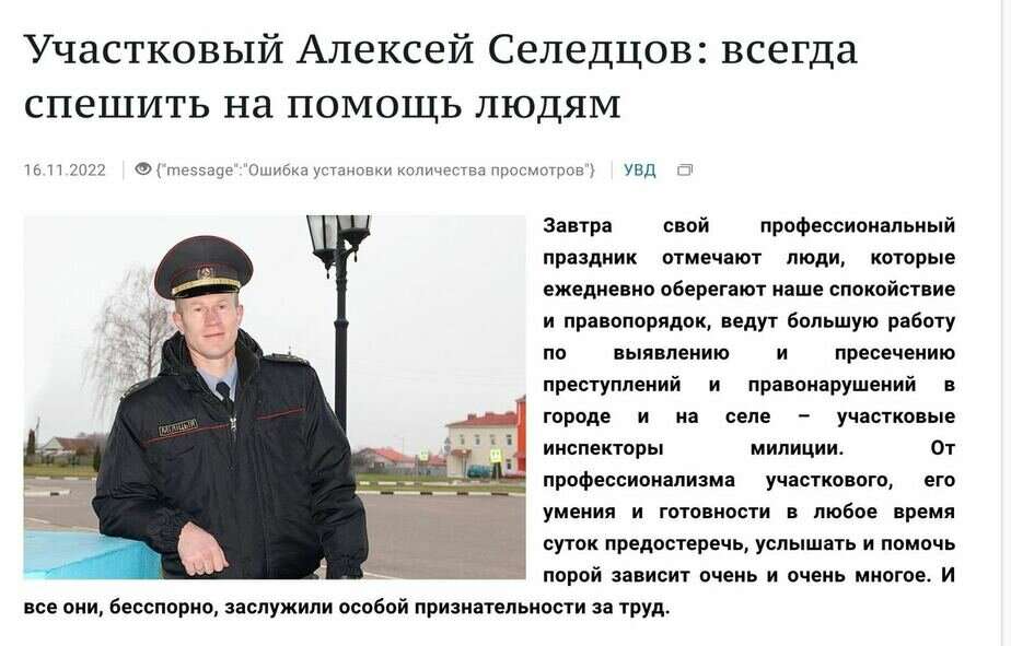 Участковый Алексей Селедцов — сын милиционера, в органах с 2009-го, окончил Белорусско-российский университет, «хороший стратег, переговорщик и юрист», как писал региональный сайт МВД.